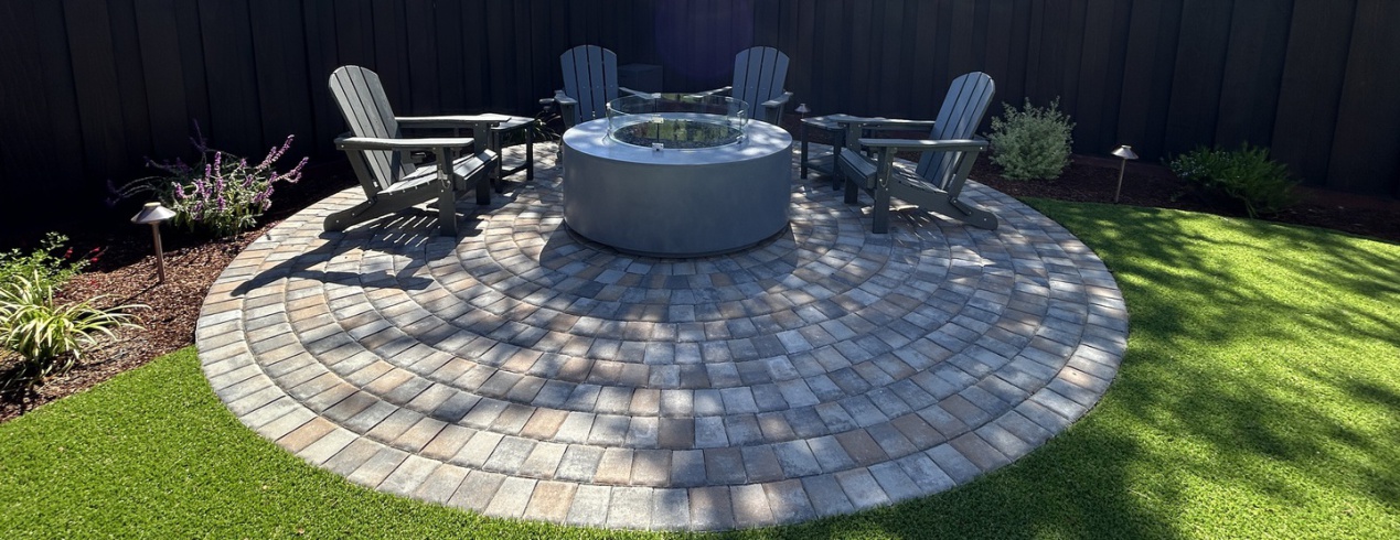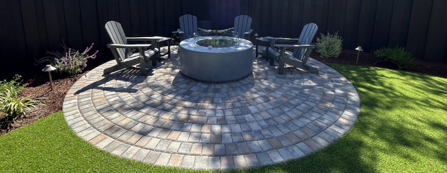 Enjoy the nice weather with friends and family on your new patio and synthetic lawn.